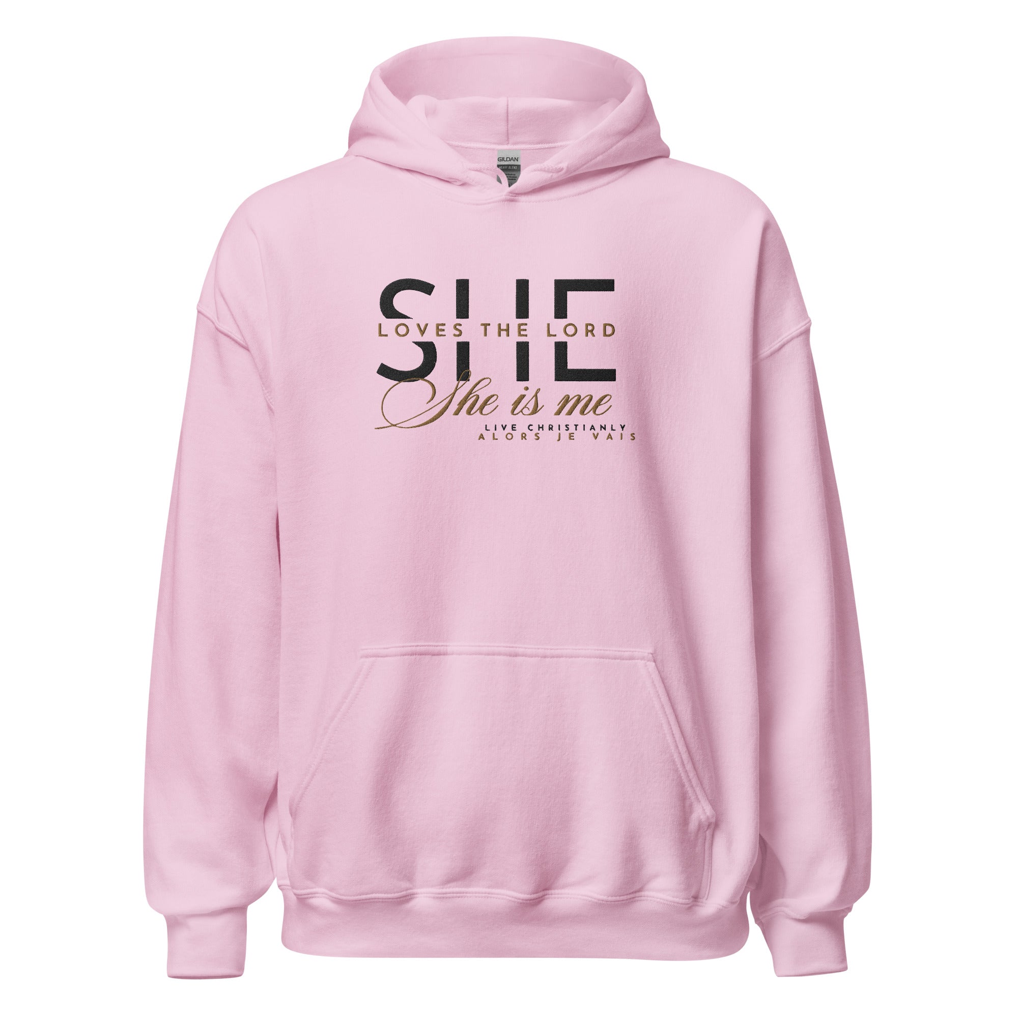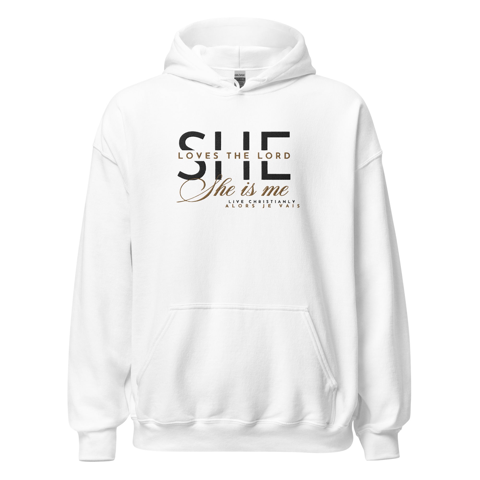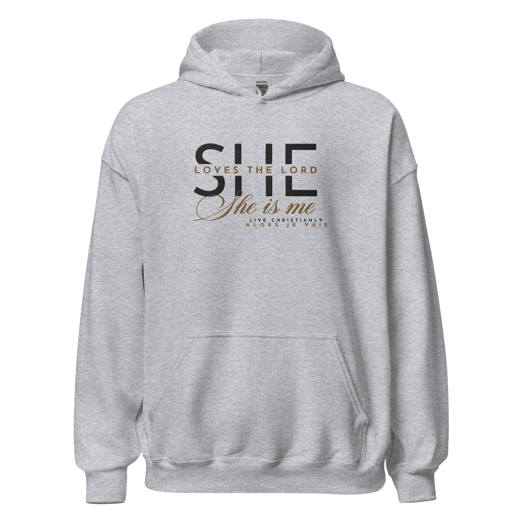 Make a statement without saying a word. Embrace your love for The Lord with this elegant and exclusive Hoodie. Crafted with high-quality materials, it's perfect for adding a touch of tasteful sophistication to your wardrobe. Show off your spiritual side in style with SHE LOVES THE LORD - SHE IS ME!