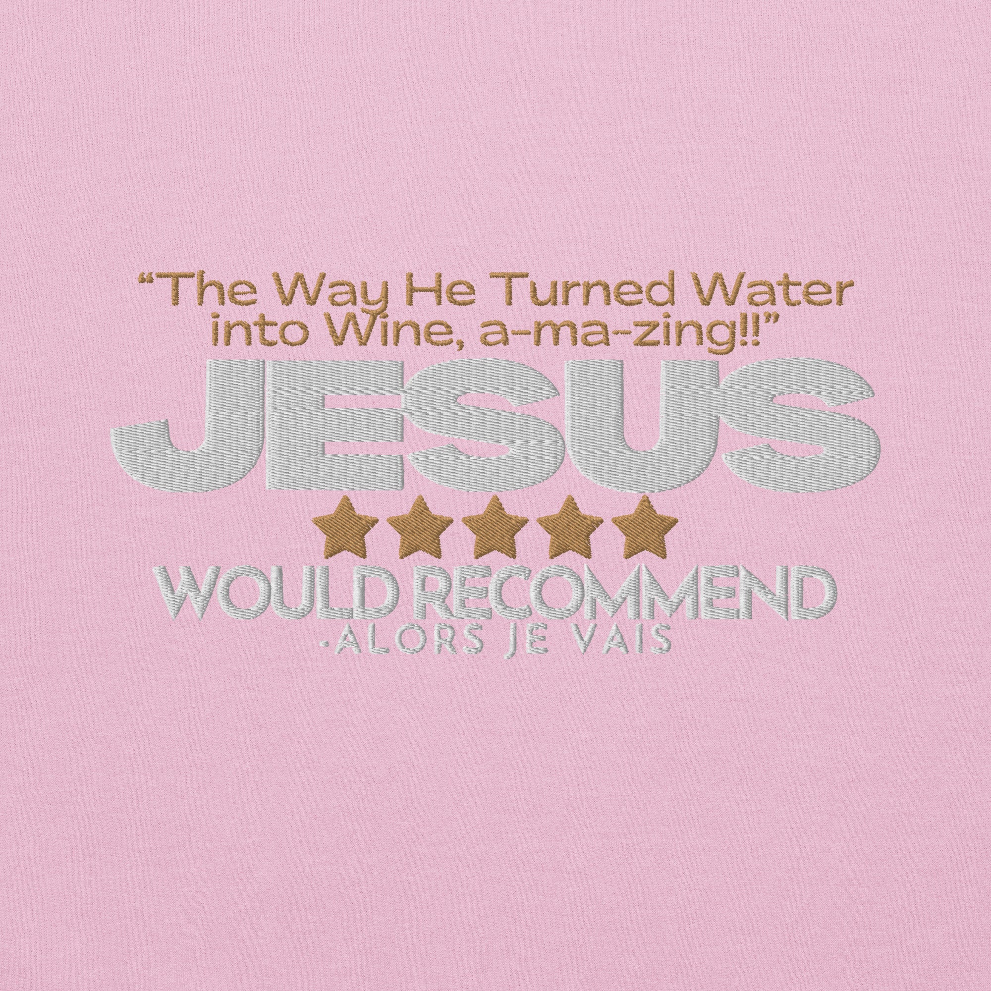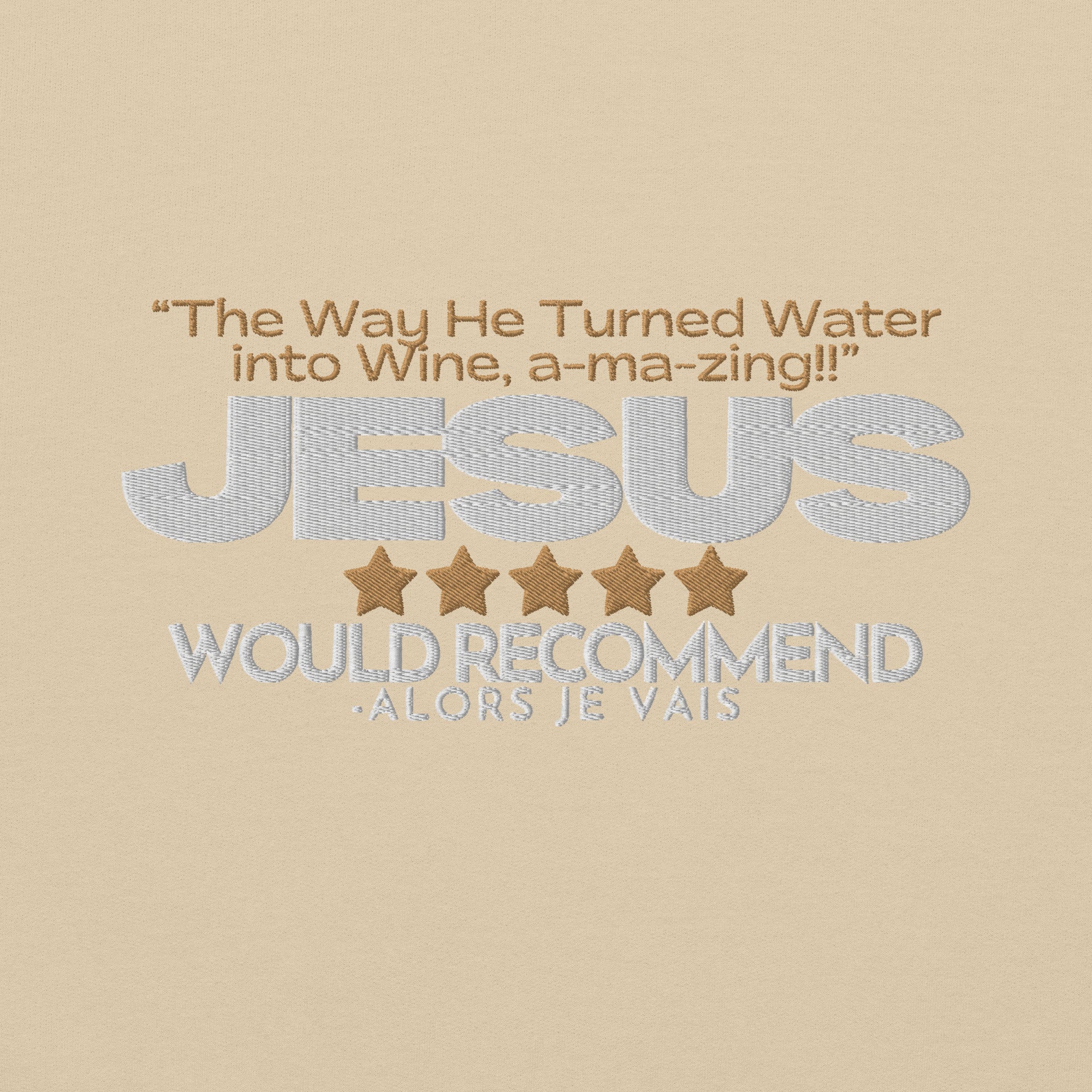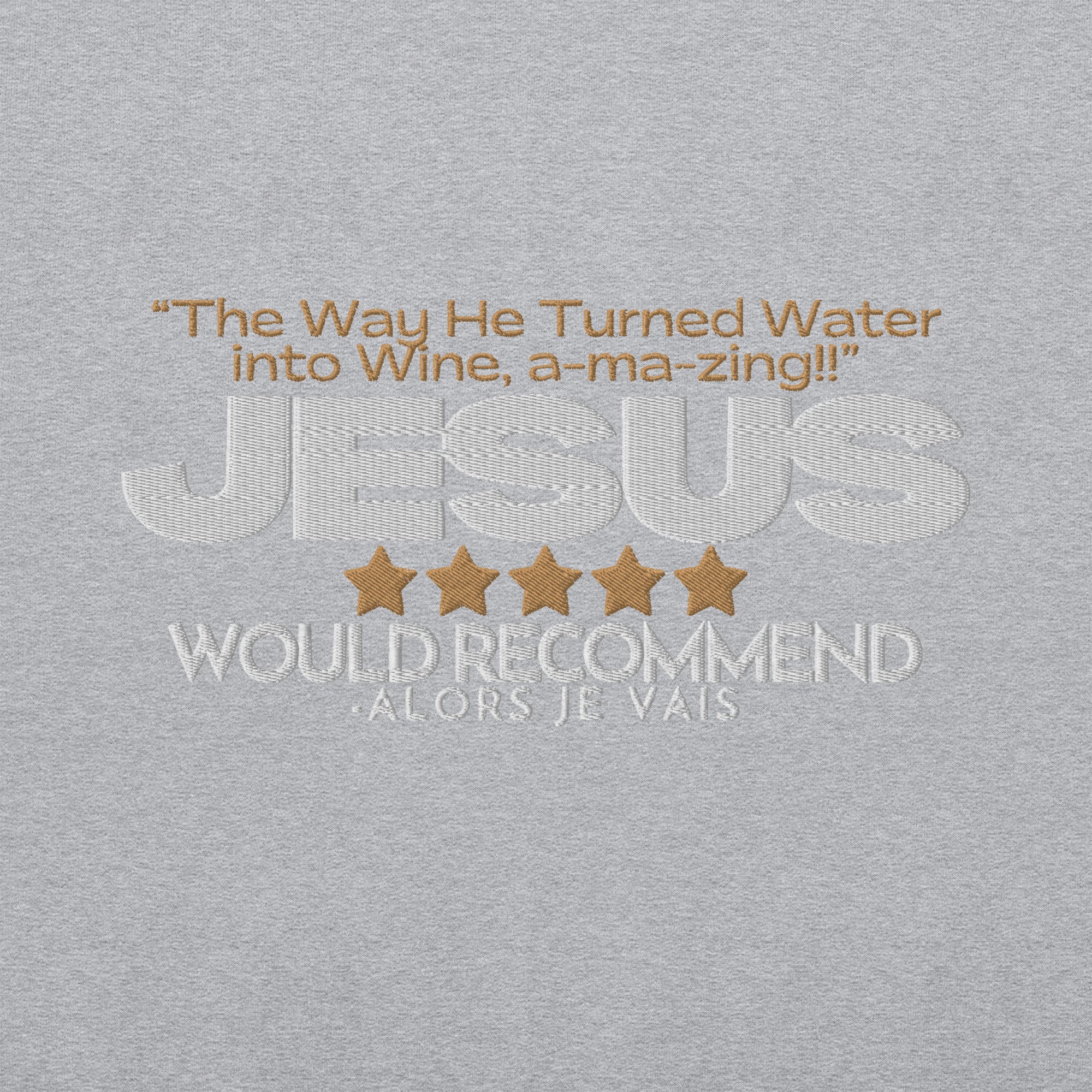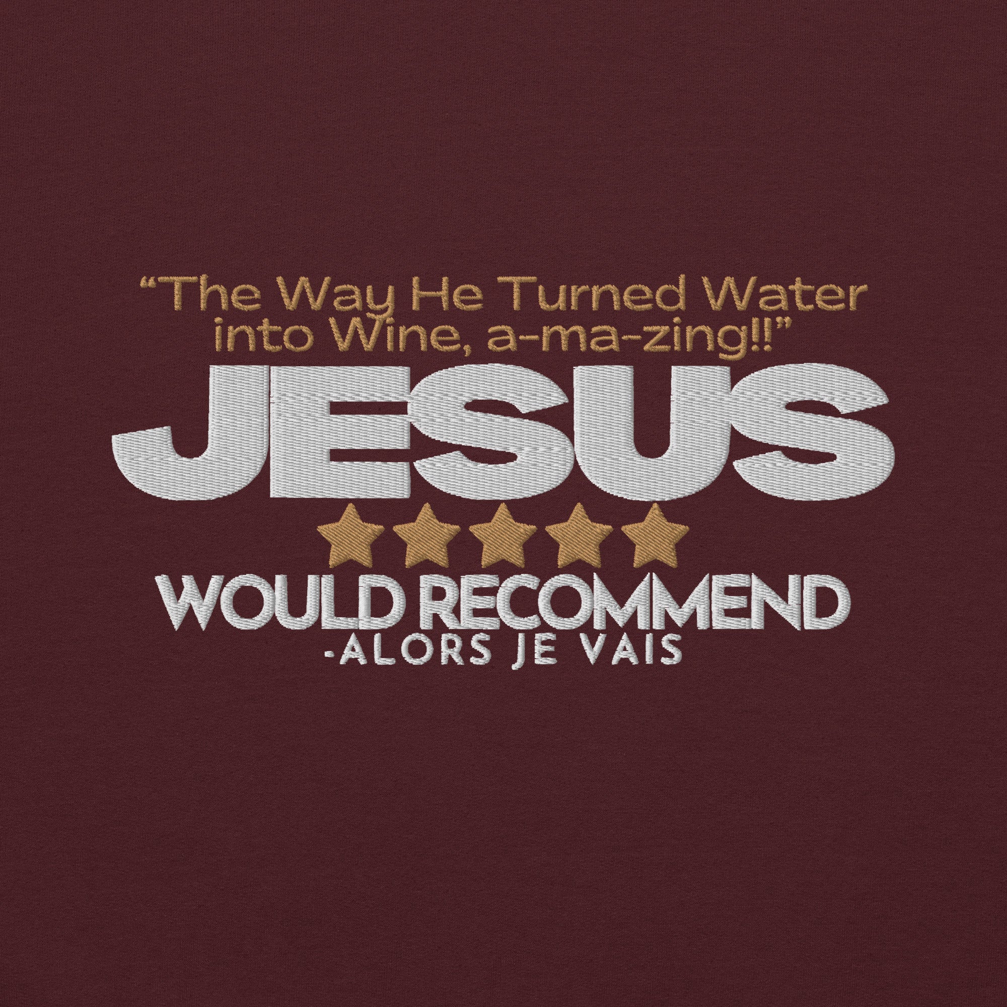 Wrap yourself in a symbol of faith and sophistication with this artisan sweatshirt. A nod to the miraculous transformation of water into wine, by none other than The Savior Himself; this piece captures the essence of divine quality as we imagine that Jesus could only make THE FINEST wine, but of course.