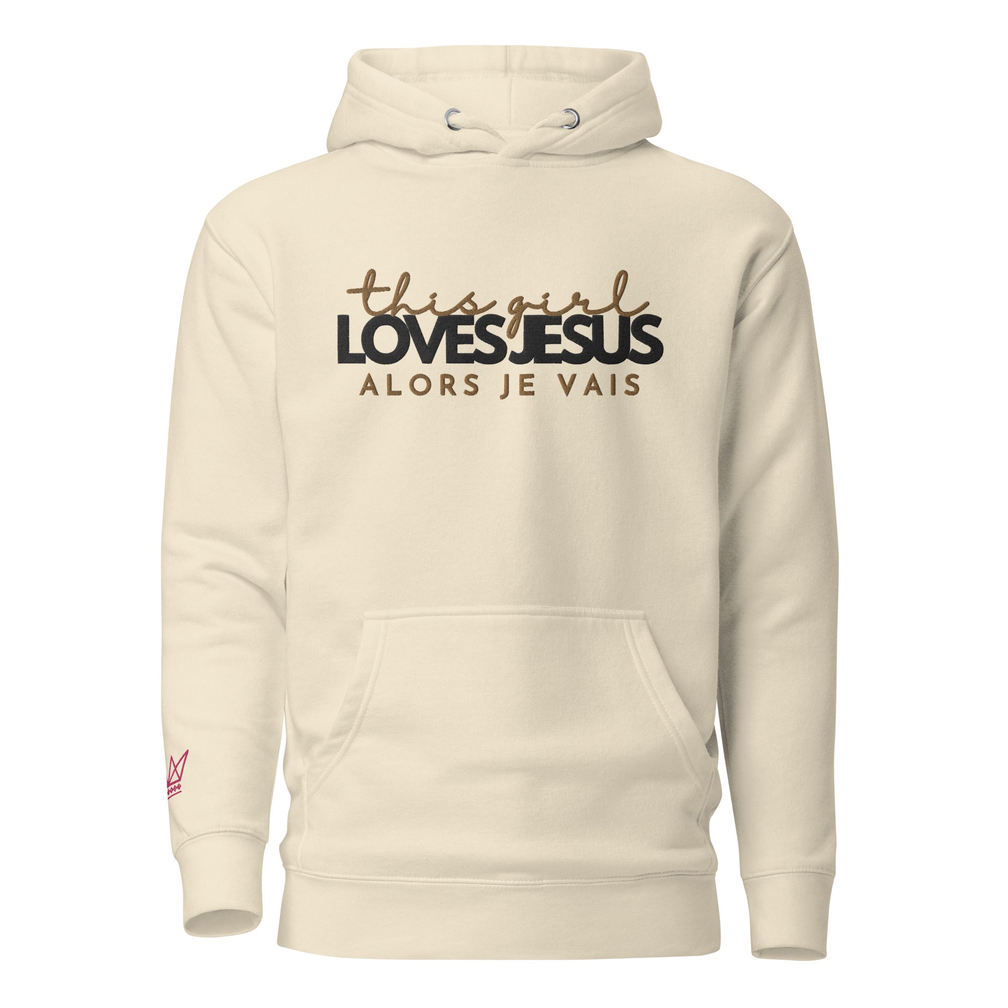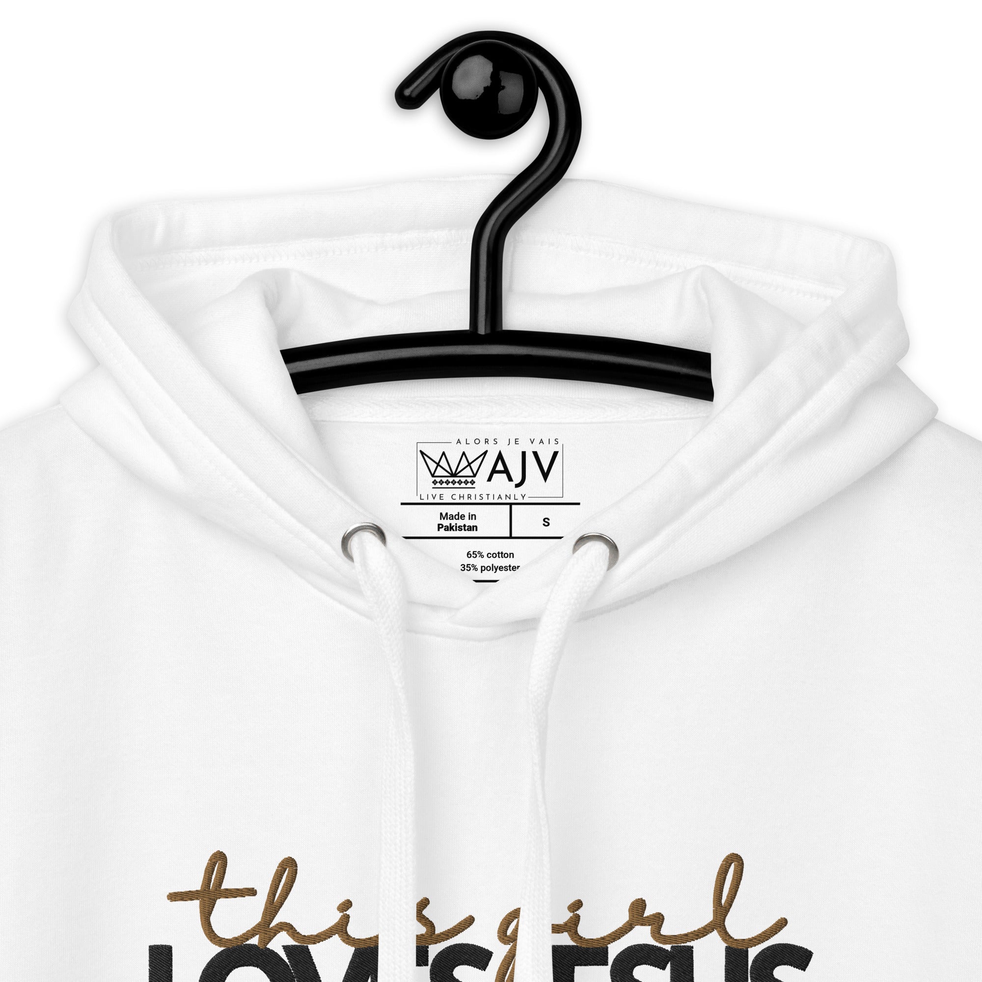 The luxurious way to show off your faith. Wrap yourself in the ultimate comfort and style with our 'This Girl Loves Jesus Hoodie'. Perfect for any occasion, this hoodie serves as a reminder of your devotion while elevating your wardrobe. Crafted with the highest quality materials, it's a must-have for any fashion-forward believer.