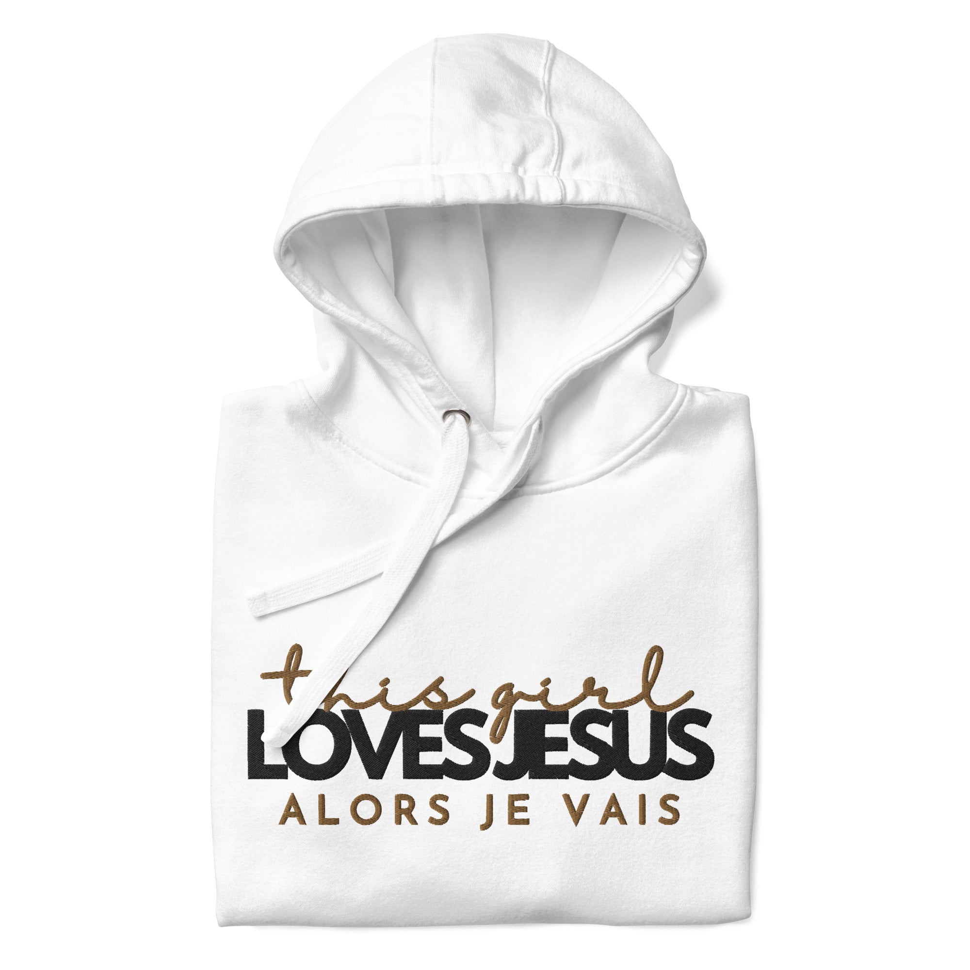 Make a statement with this luxurious and exclusive ALORS JE VAIS hoodie. Elevate your style and stand out from the crowd with the high-quality materials and designed with heart of grace, humility and love for Our Lord and Savior Christ Jesus. It's a must-have for those who appreciate a little luxury while they make a bold statement of Faith + Love.