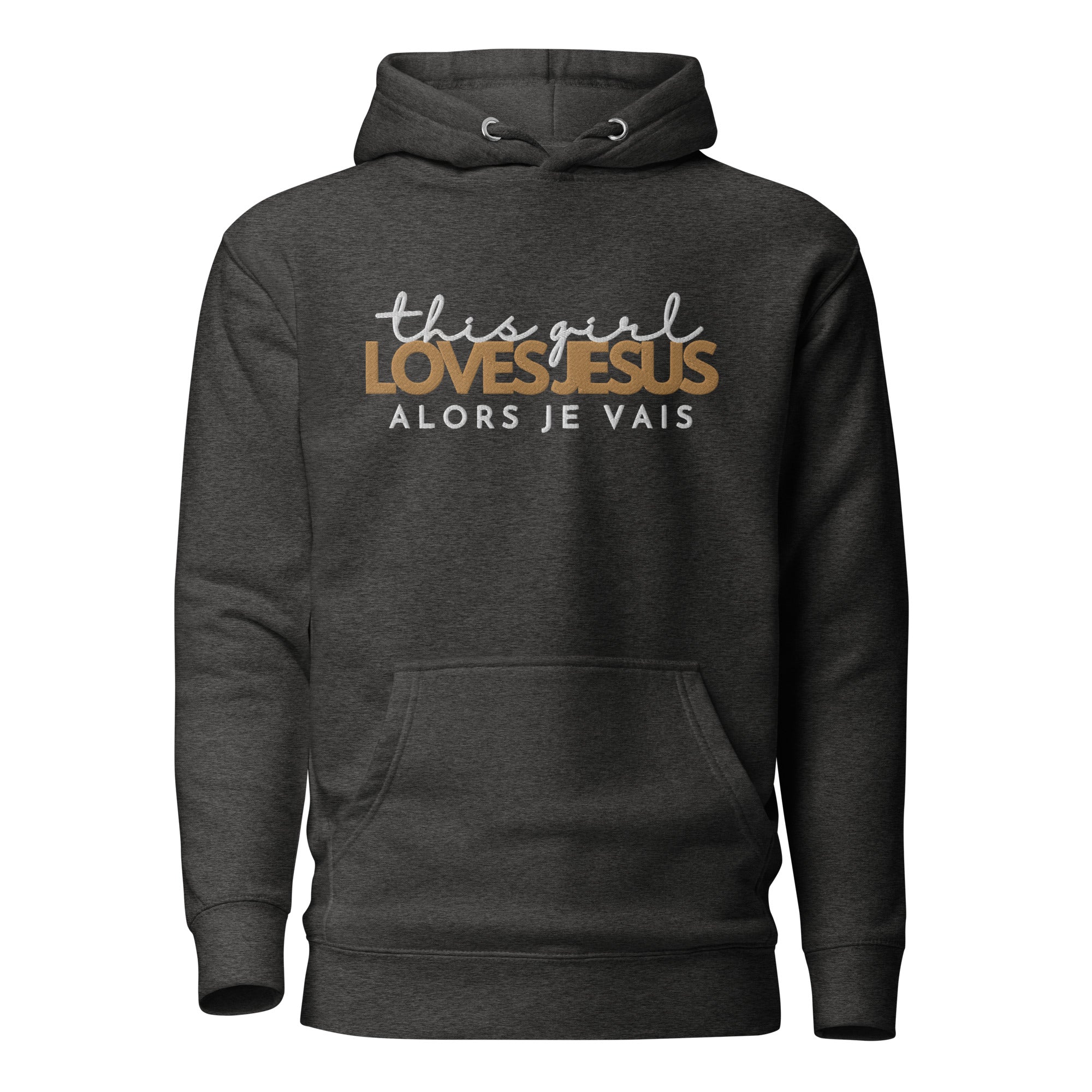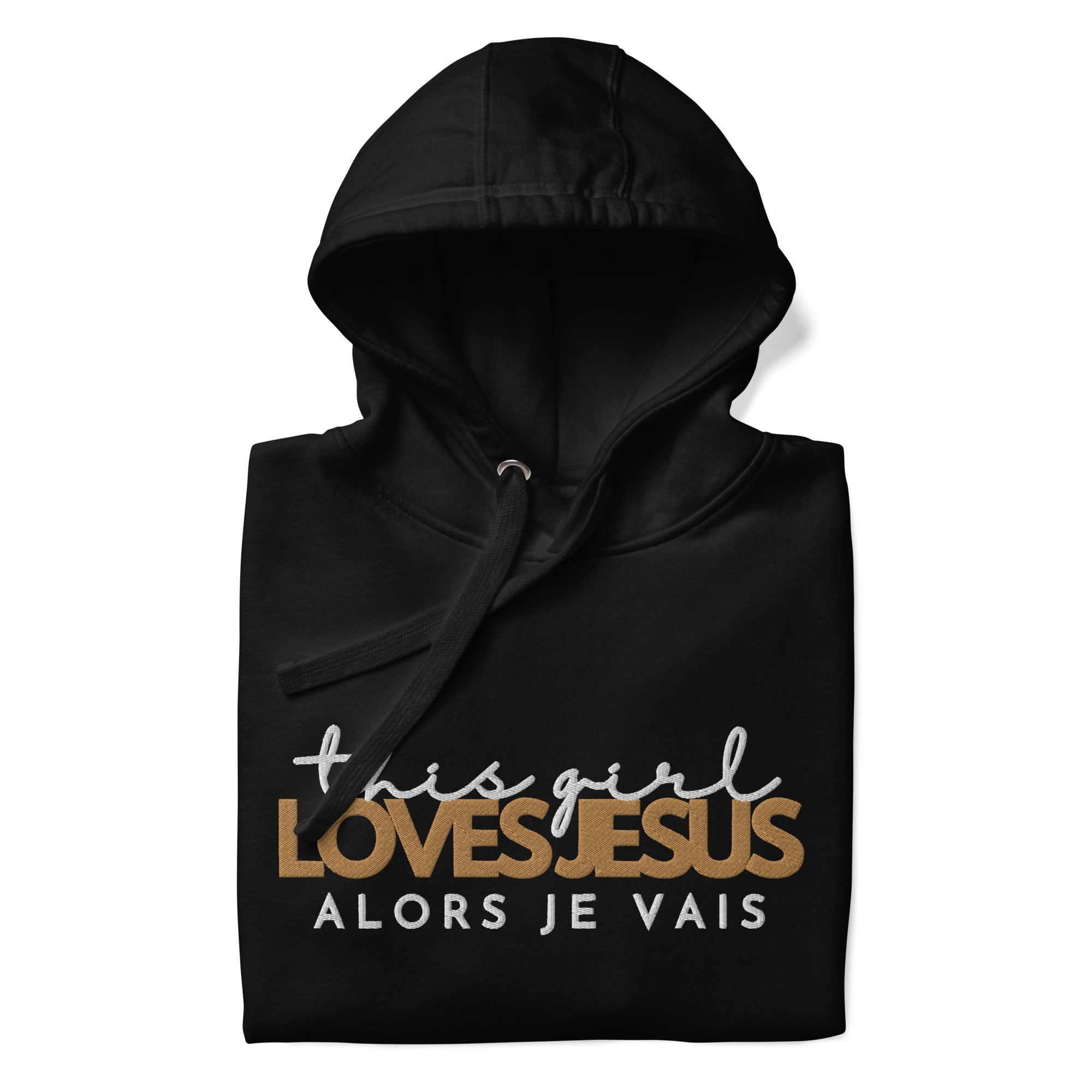 Make a statement with this luxurious and exclusive ALORS JE VAIS hoodie. Elevate your style and stand out from the crowd with the high-quality materials and designed with heart of grace, humility and love for Our Lord and Savior Christ Jesus. It's a must-have for those who appreciate a little luxury while they make a bold statement of Faith + Love.