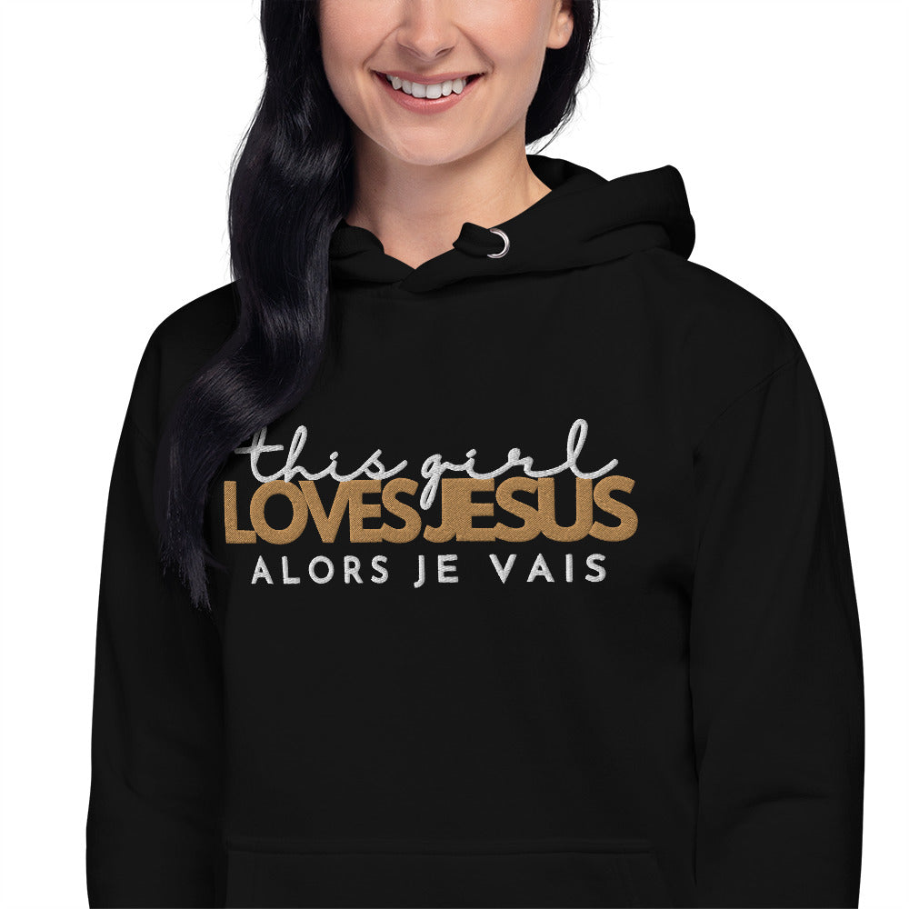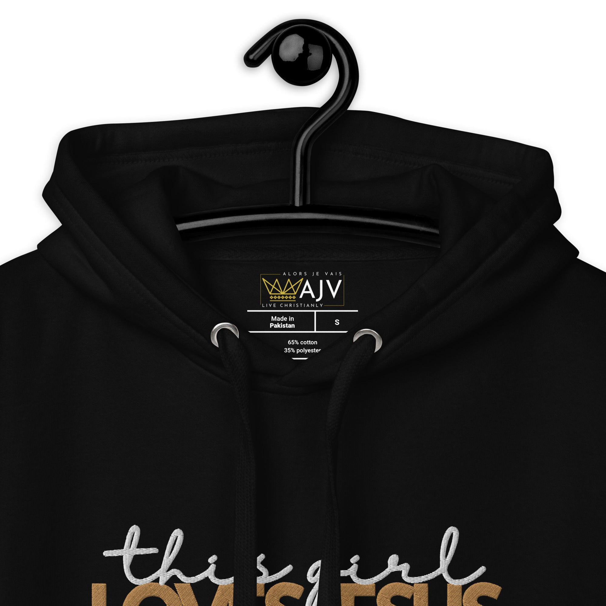 The luxurious way to show off your faith. Wrap yourself in the ultimate comfort and style with our 'This Girl Loves Jesus Hoodie'. Perfect for any occasion, this hoodie serves as a reminder of your devotion while elevating your wardrobe. Crafted with the highest quality materials, it's a must-have for any fashion-forward believer.