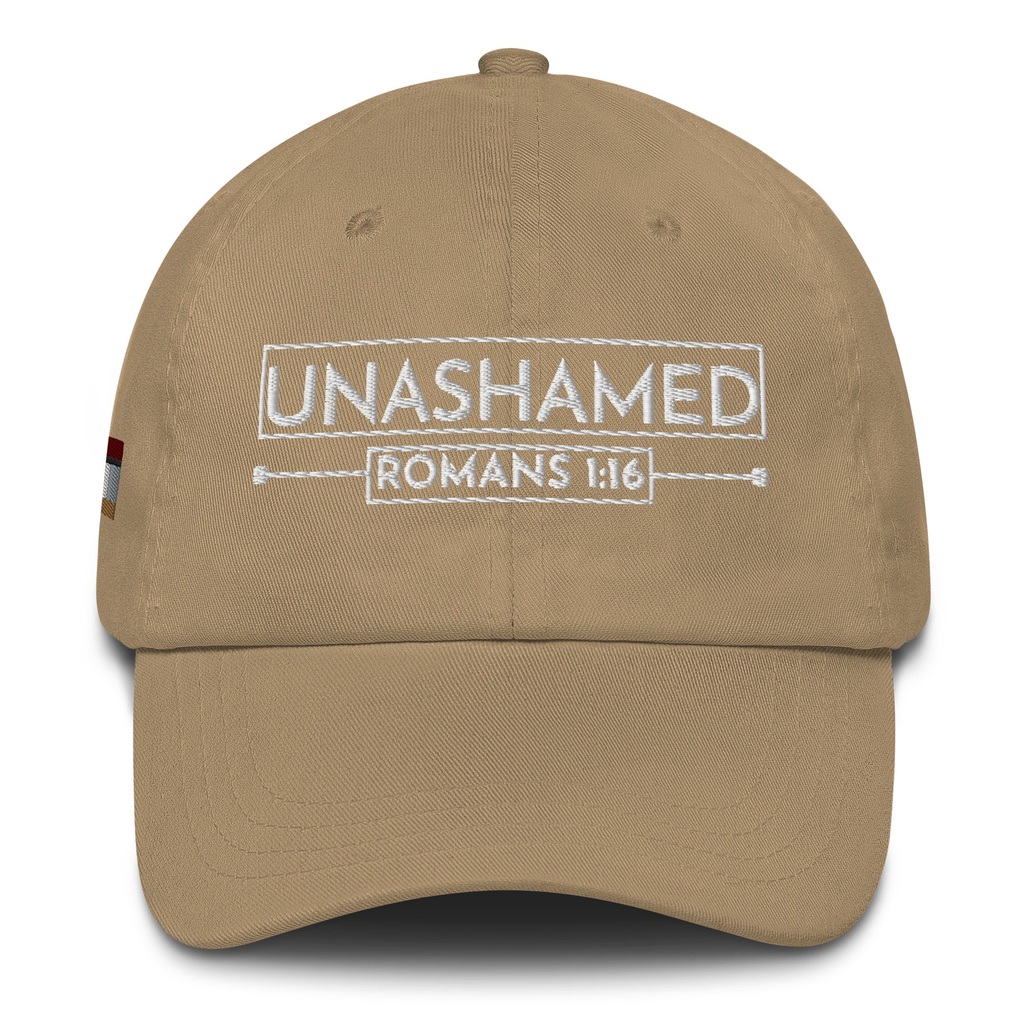 Proudly display your faith with our elegant and exclusive I AM NOT ASHAMED DAD HAT (W). Embrace the timeless message of The Gospel while exuding sophistication and style. Made with premium materials and designed with taste in mind, this hat is the perfect addition to any fashion-forward wardrobe. Share your beliefs in a subtle yet powerful way with this must-have accessory.