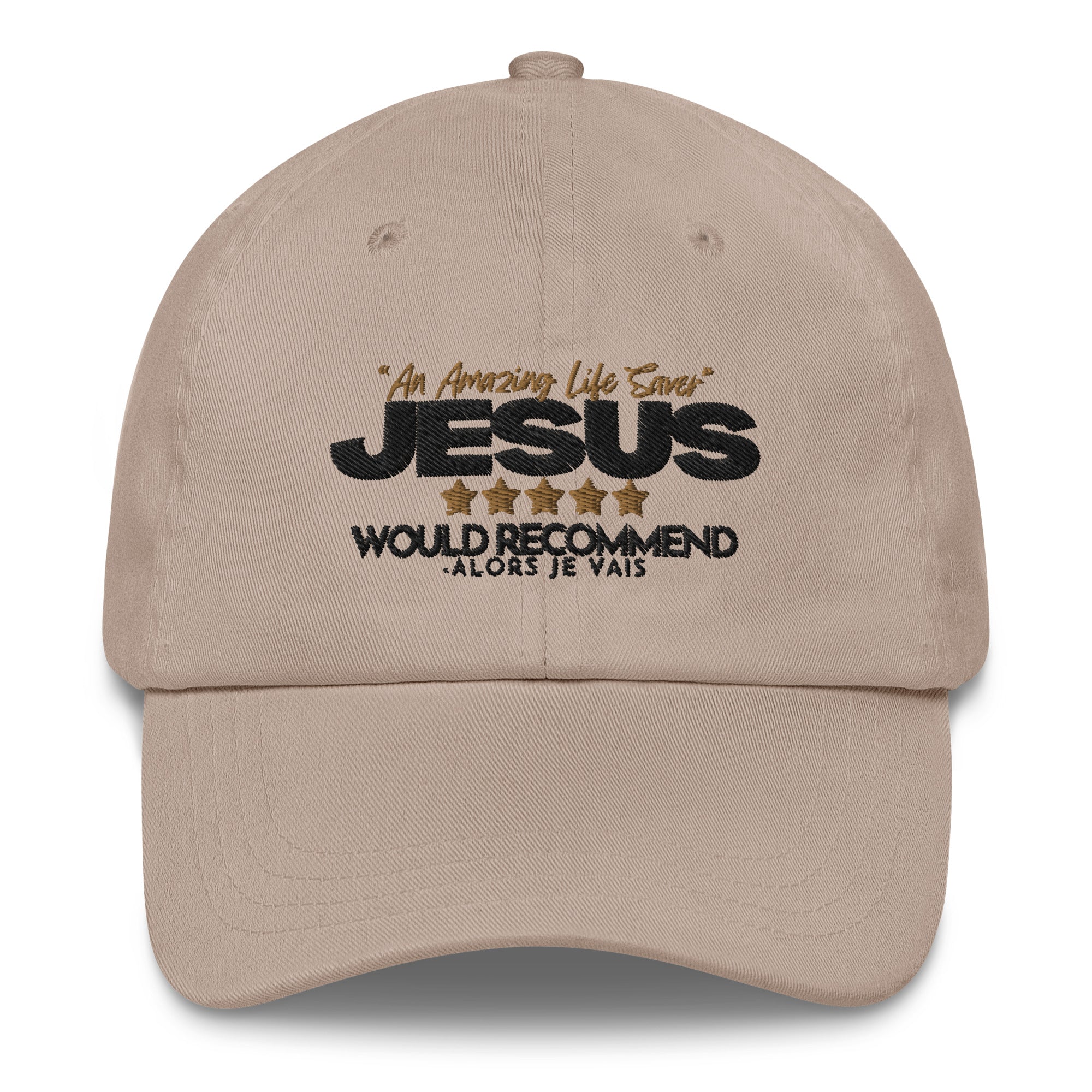 ALORS JE VAIS’ JESUS AN AMAZING LIFE SAVER HAT Get ready for the ultimate in faith, fashion and function with this sleek and stylish hat is crafted to elevate your look and project your elemental LOVE and appreciation to The Lord. Whether you're out for a stroll or running errand, this hat is sure to make a statement and keep you covered. Don't settle for ordinary when you can have the best.