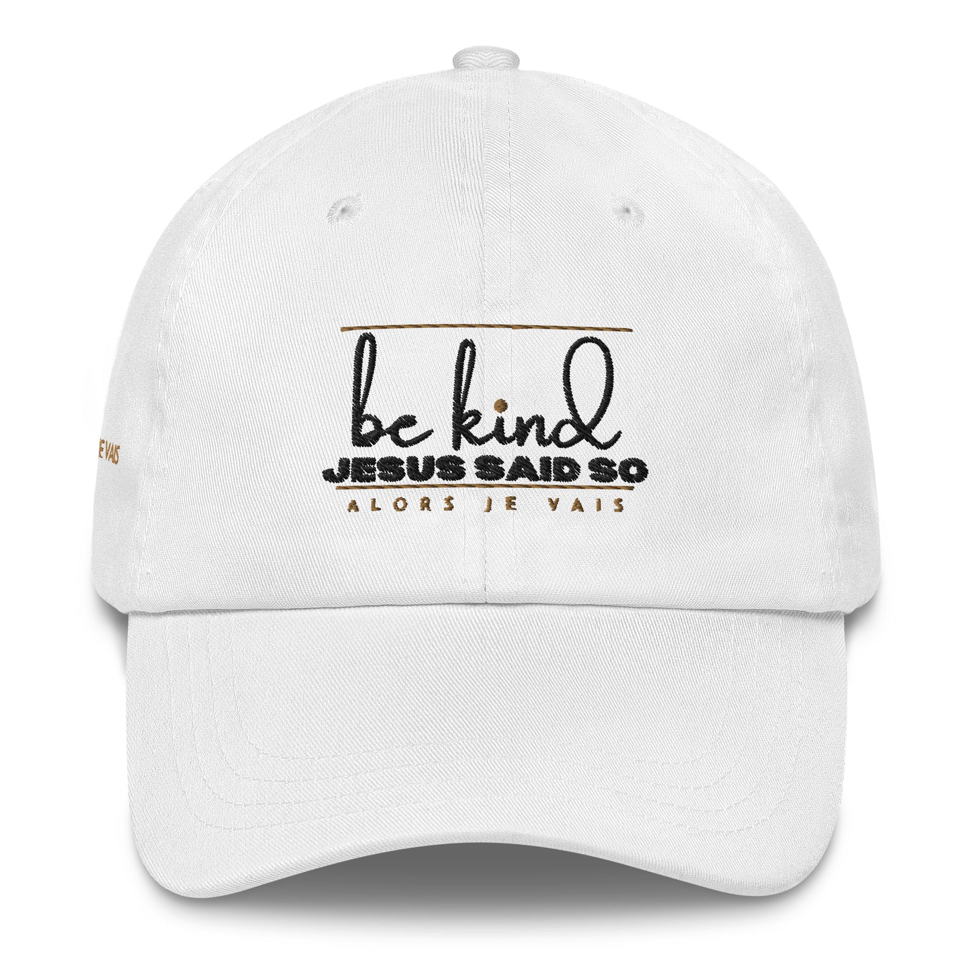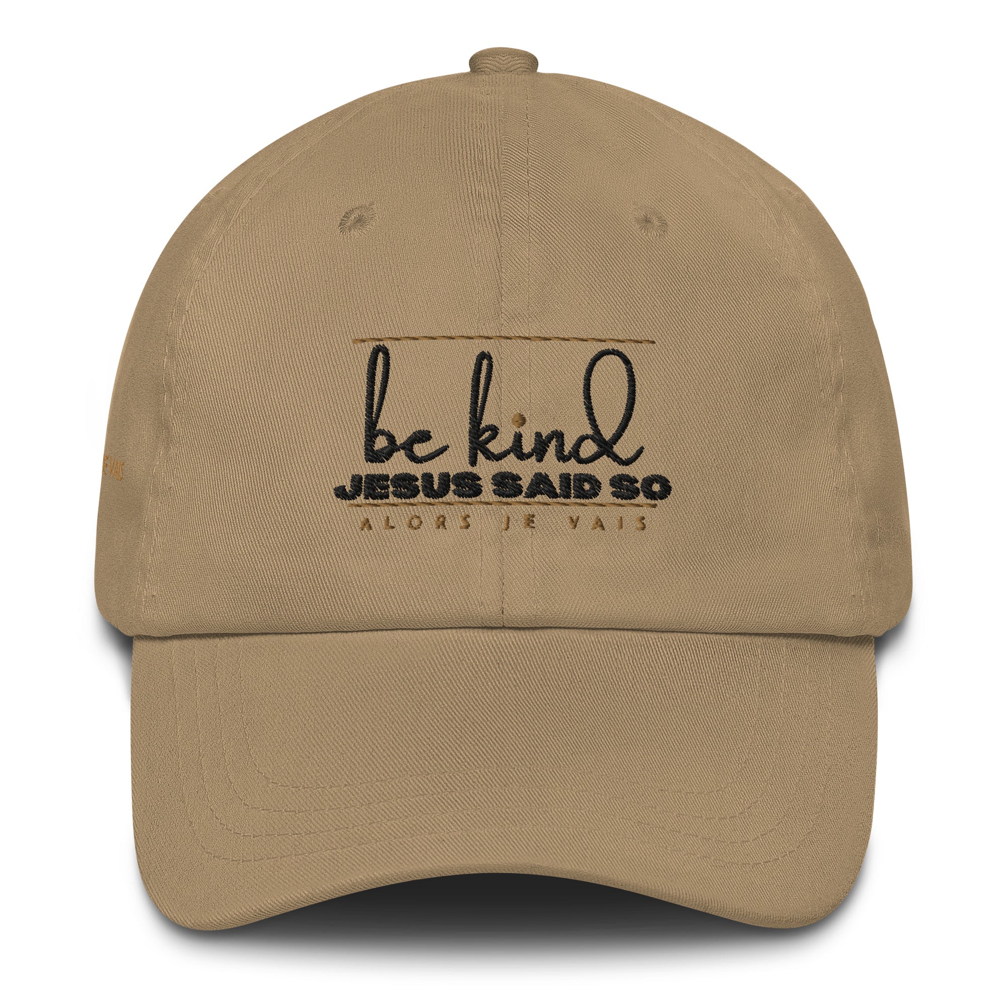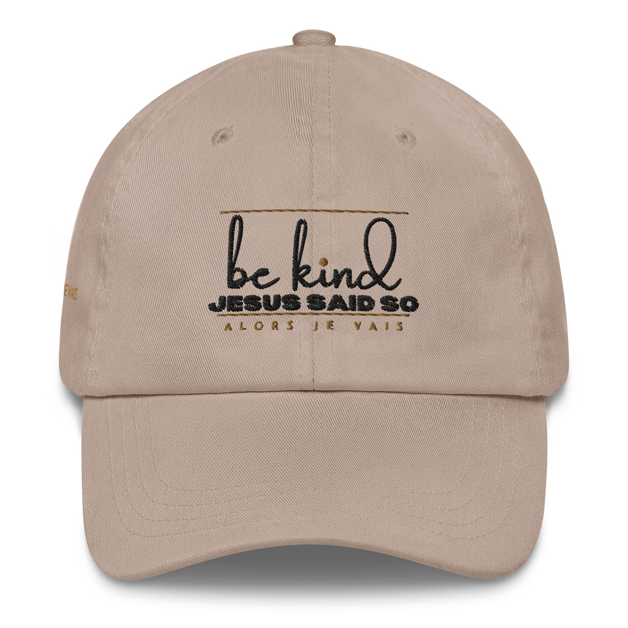 ALORS JE VAIS’ BE KIND JESUS SAID SO DAD HAT - This hat is not just a fashion statement, it's a reminder to be kind in all that you do. Let this beautifully crafted hat be a symbol of your kindness and compassion towards others.