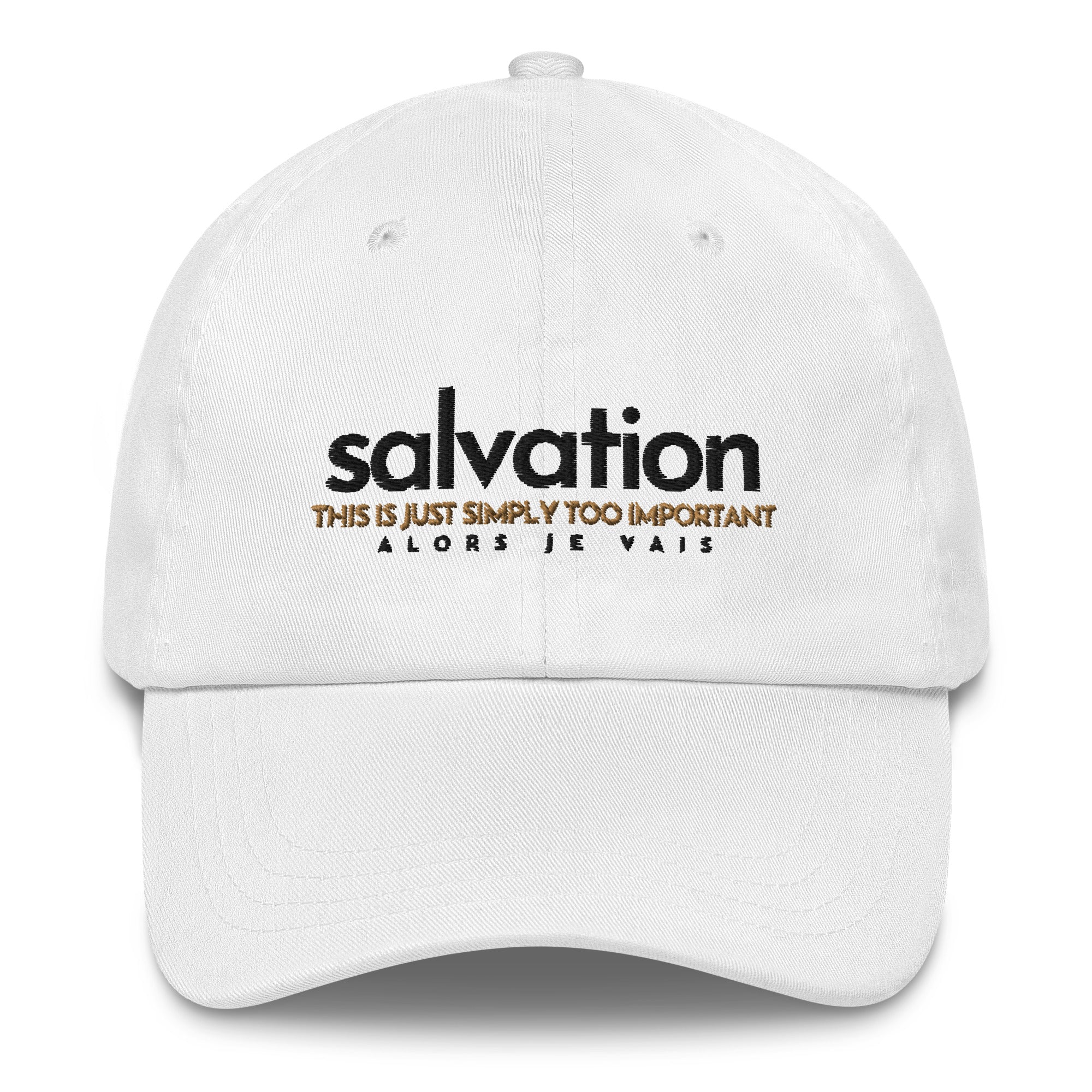 Salvation, this is just too important! Be a beacon, be a vessel for Salvation! Don't miss your chance to elevate your style with this SALVATION HAT. Experience the perfect blend of comfort, sophistication, and elegance. Rediscover the power of faith-fashion with this iconic hat that will become your go-to accessory for any occasion.
