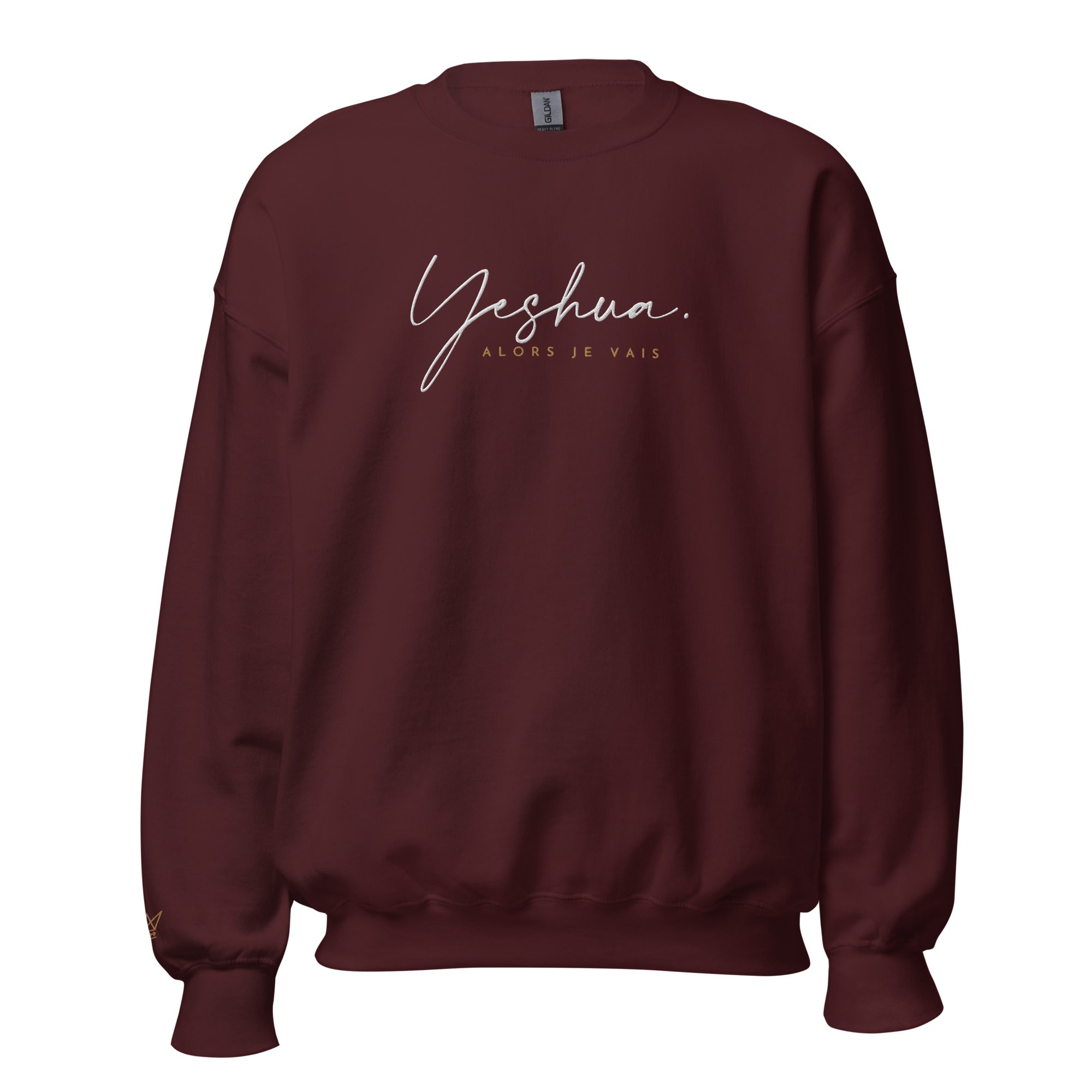 Enjoy comfort and style in every step you take with this one-of-a-kind piece that announces your faith+fashion-forward taste and expresses your not-at-all-in-the-least-bit-ashamed love. Make a statement without saying a word - this sweatshirt speaks volumes. With your ALORS JE VAIS ‘YESHUA’ sweatshirt, you'll never have to sacrifice style for comfort again.