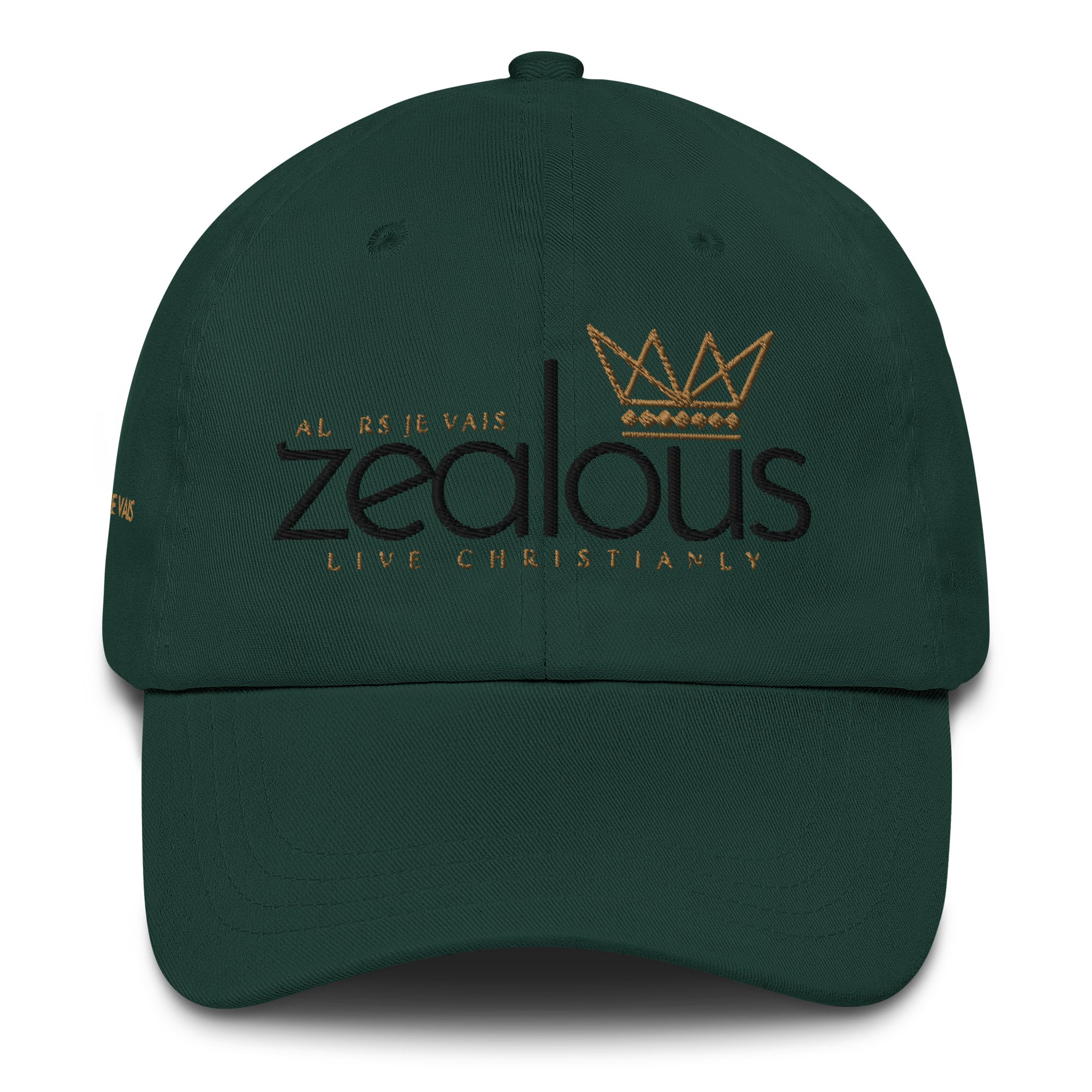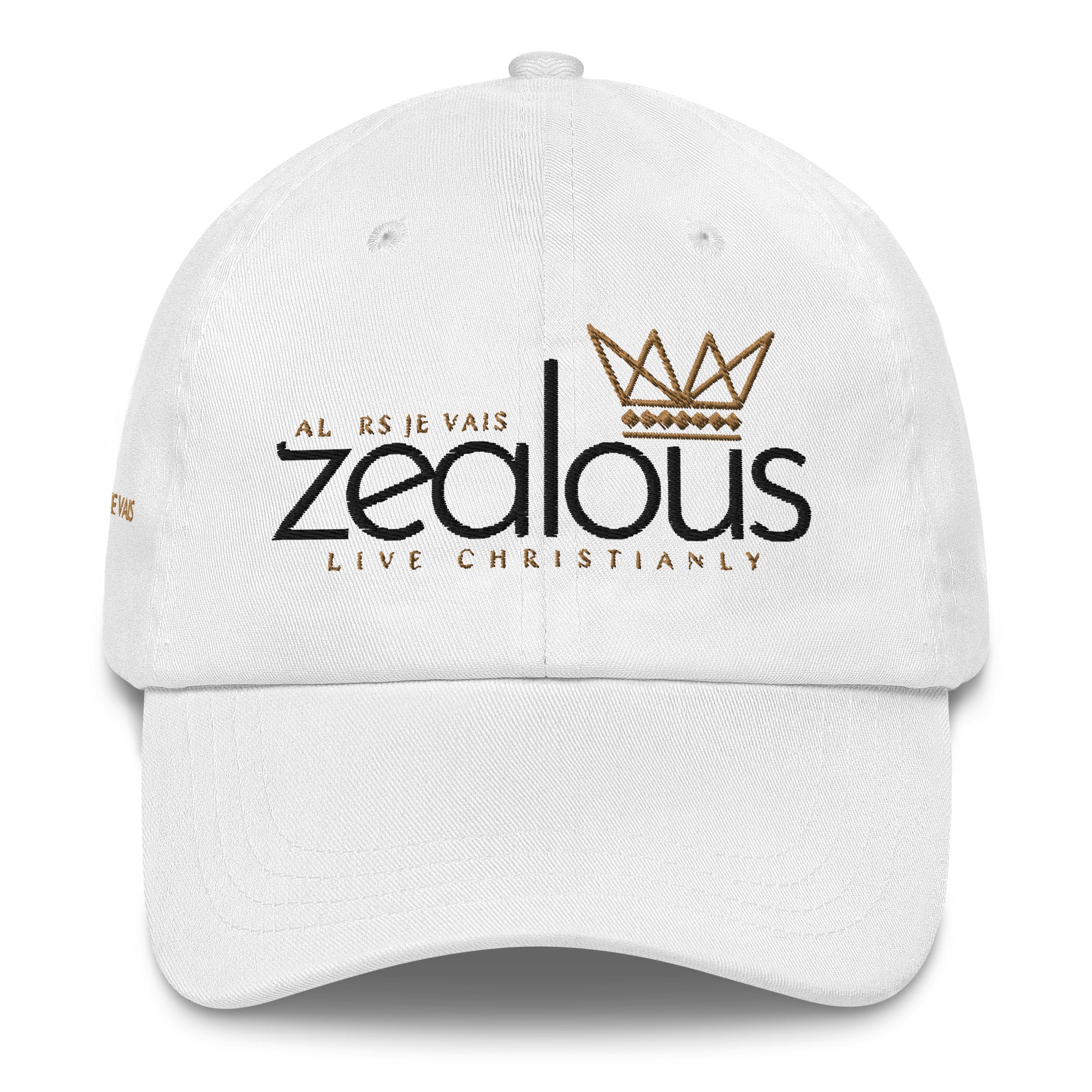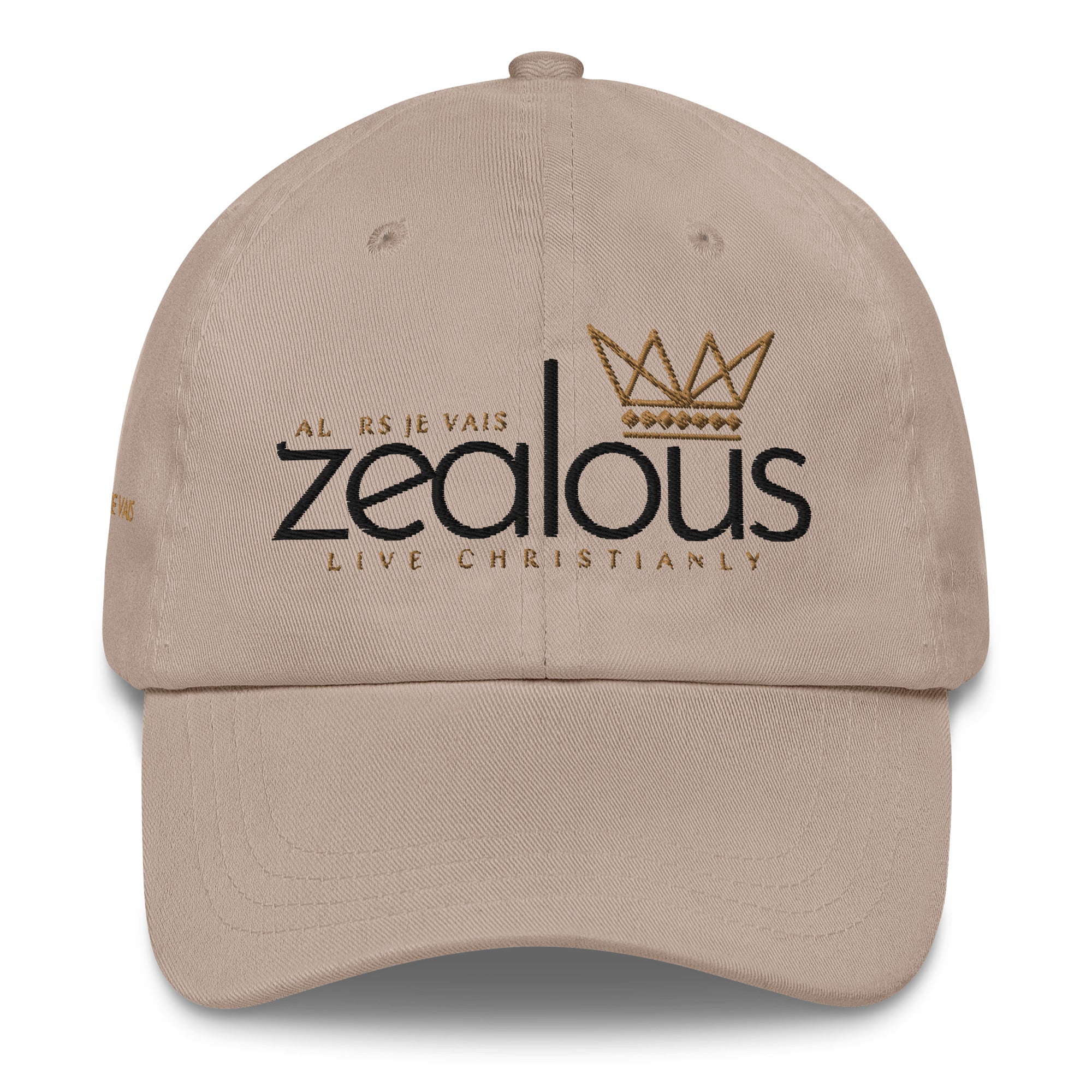 ALORS JE VAIS' ZEALOUS FOR CHRIST HAT - Revitalize any outfit with our ZEALOUS DAD HAT (W). A timeless and sophisticated choice, this versatile piece features the exclusive 'Zealous' embroidery, a symbol of true dedication and passion to Our Saviour!!! Crafted from premium materials, it's a smart addition to your wardrobe that exudes confidence and style. Be ready to elevate any look with this powerful accessory.
