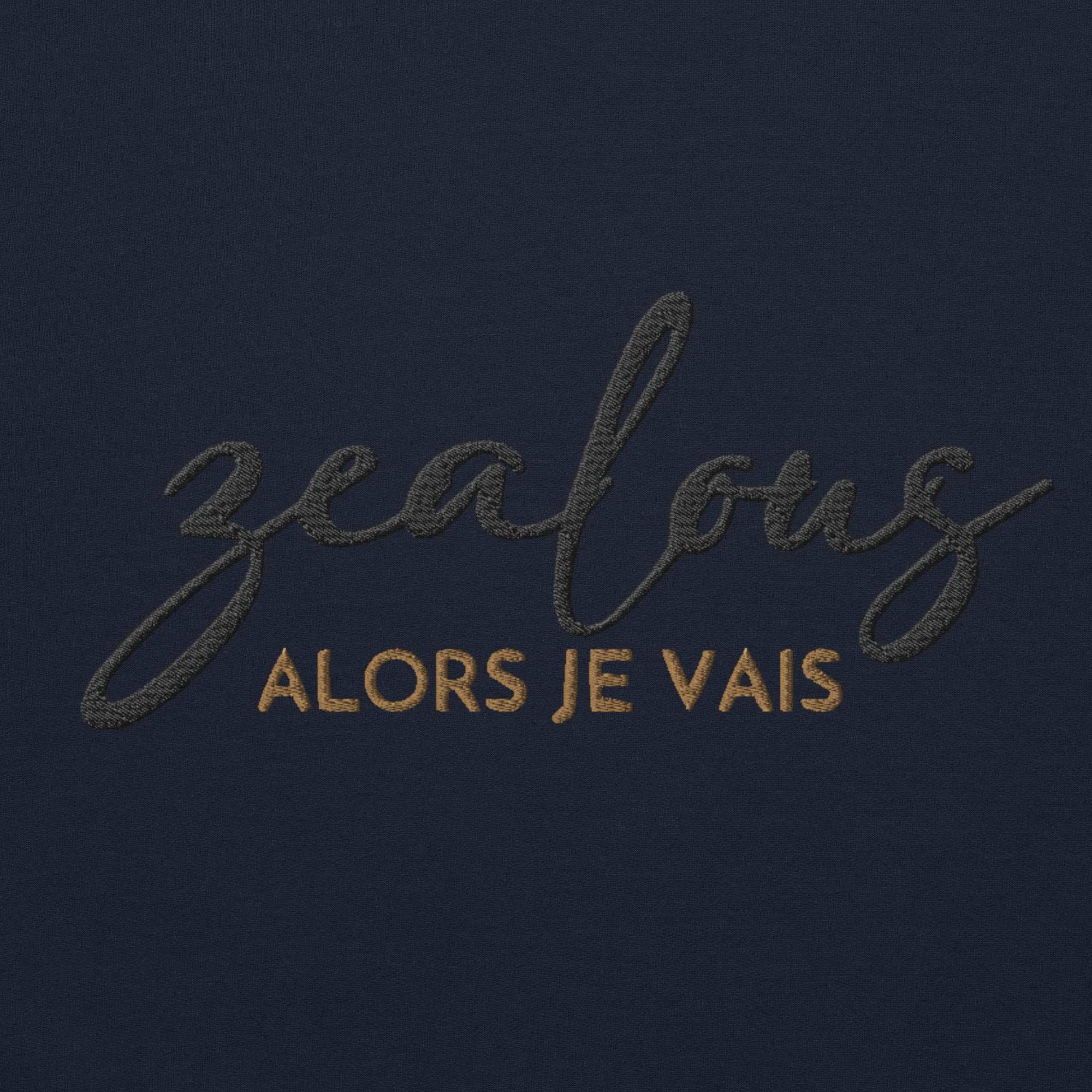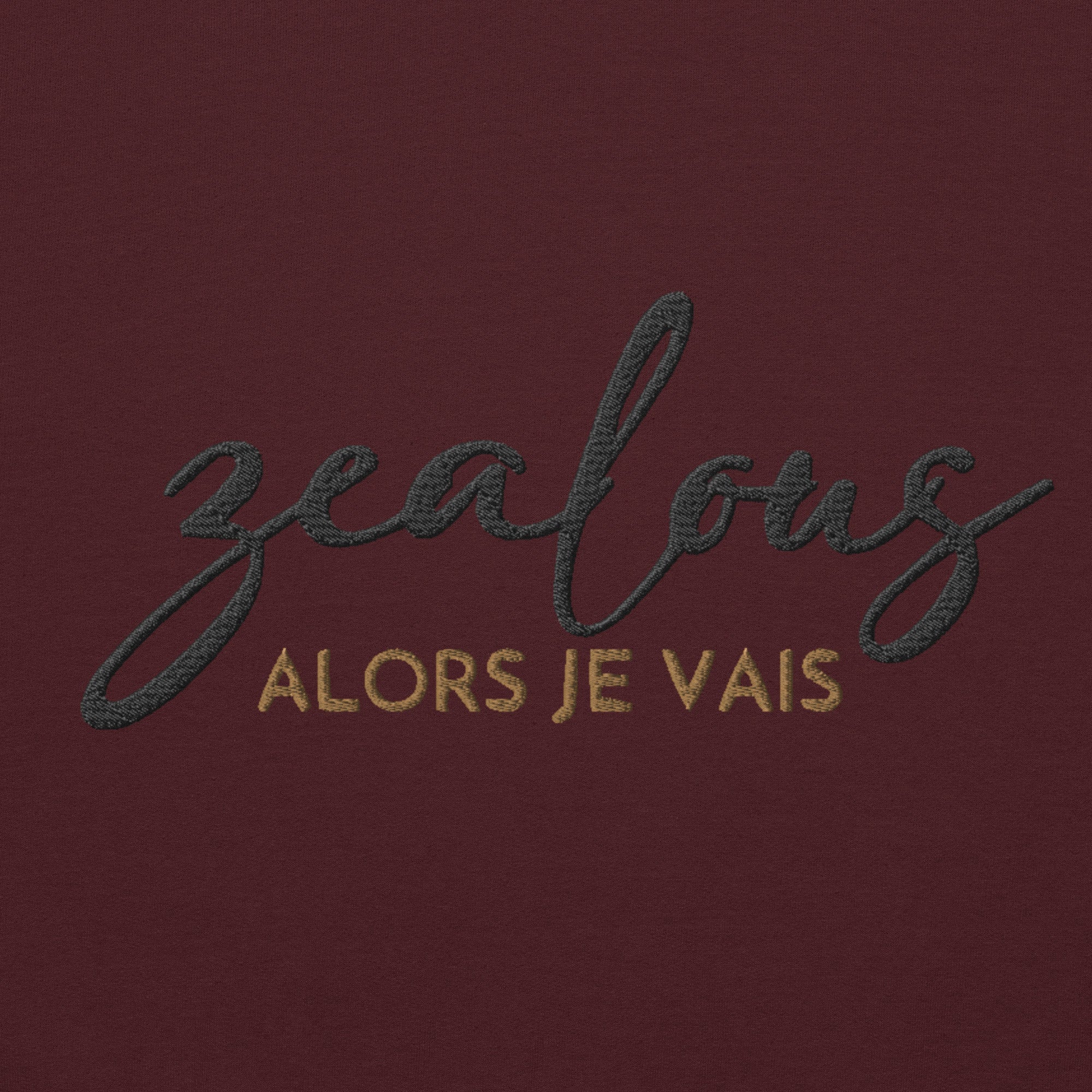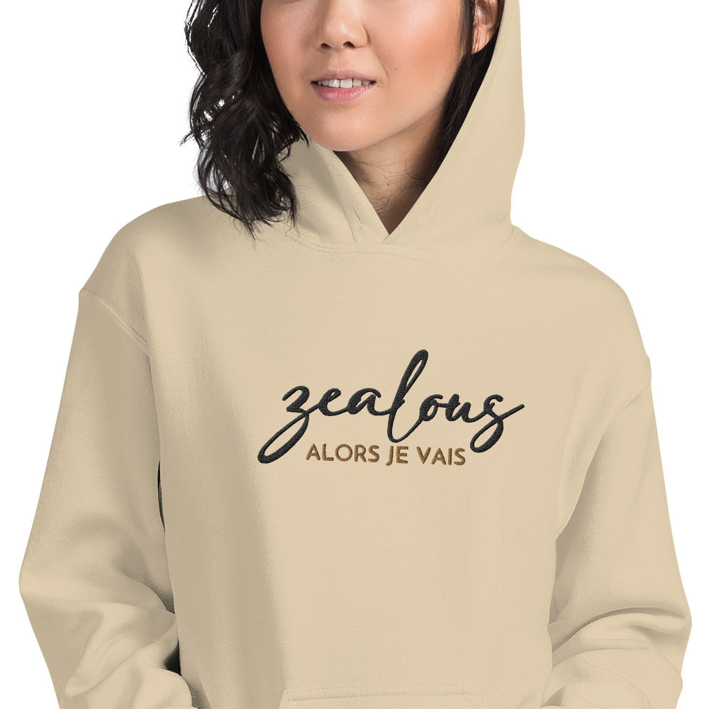 Express your inner devotion with the stunning ZEALOUS ALORS JE VAIS HOODIE